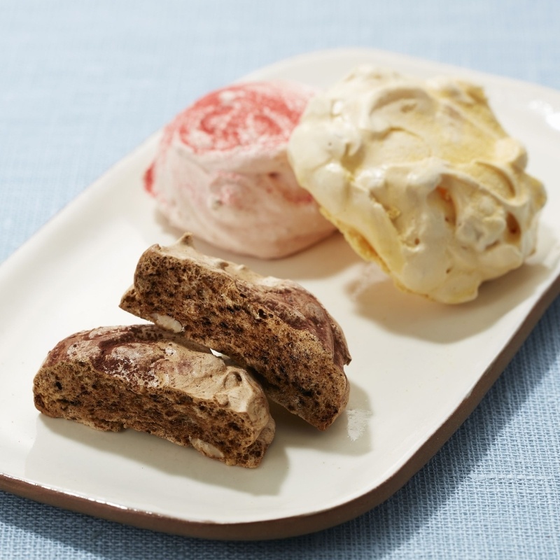 縁日のカルメ焼きから着想を得たメレンゲ菓子。
