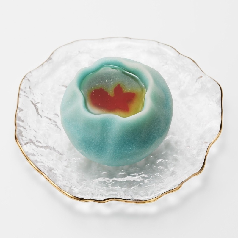 金魚鉢を上から覗いたような繊細なビジュアルで、和菓子ならではの美しさが際立ちます。