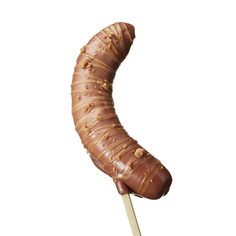 完熟バナナにミルクガナッシュとキャラメルソースを重ねた、贅沢な進化系チョコバナナです。